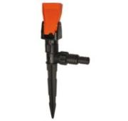 Благодаря широкому основанию и колышку-упору насадка идеально подходит для полива как огородов, так и газонов. Распыл осуществляется по радиусу вокруг насадки или при использовании щелевой насадки на форсунку по прямой.